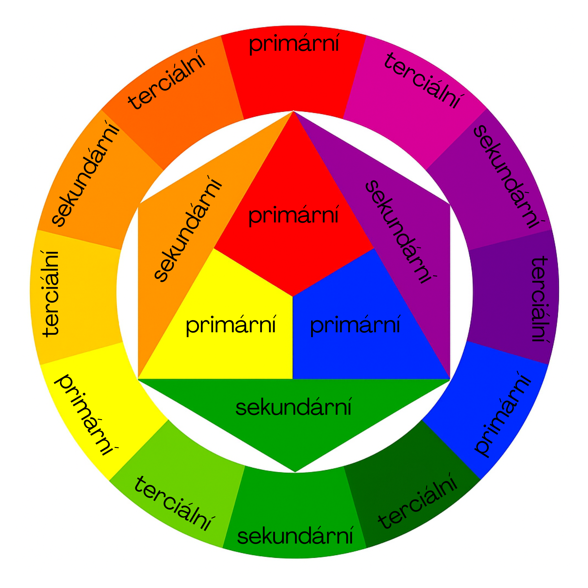 Z nich se dá namíchat téměř všechno, co známe. Když se dvě z těchto základních barev spojí, vzniká barva sekundární: